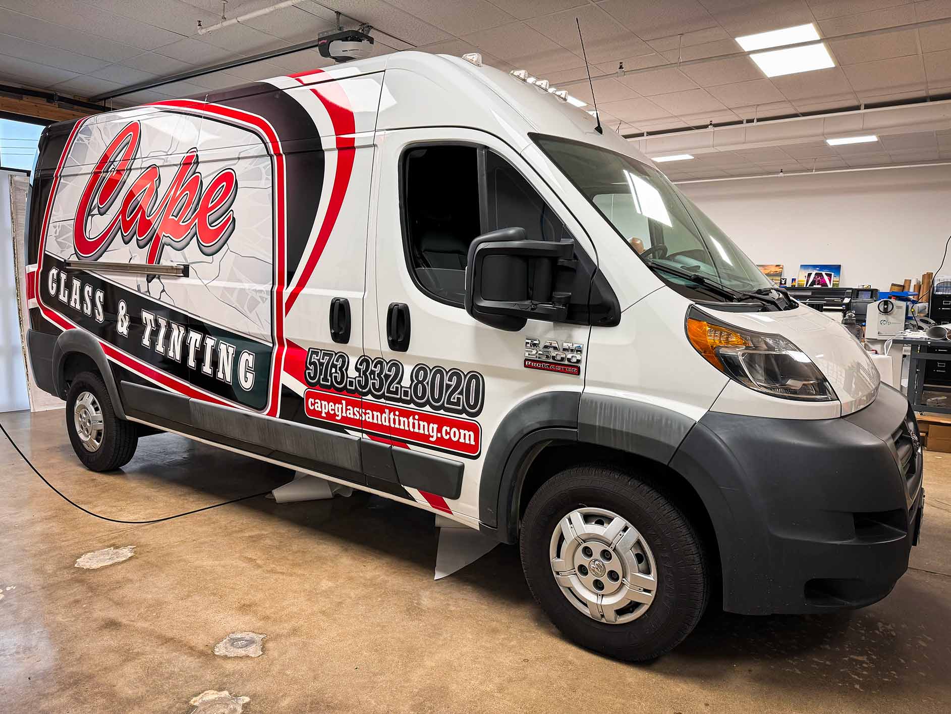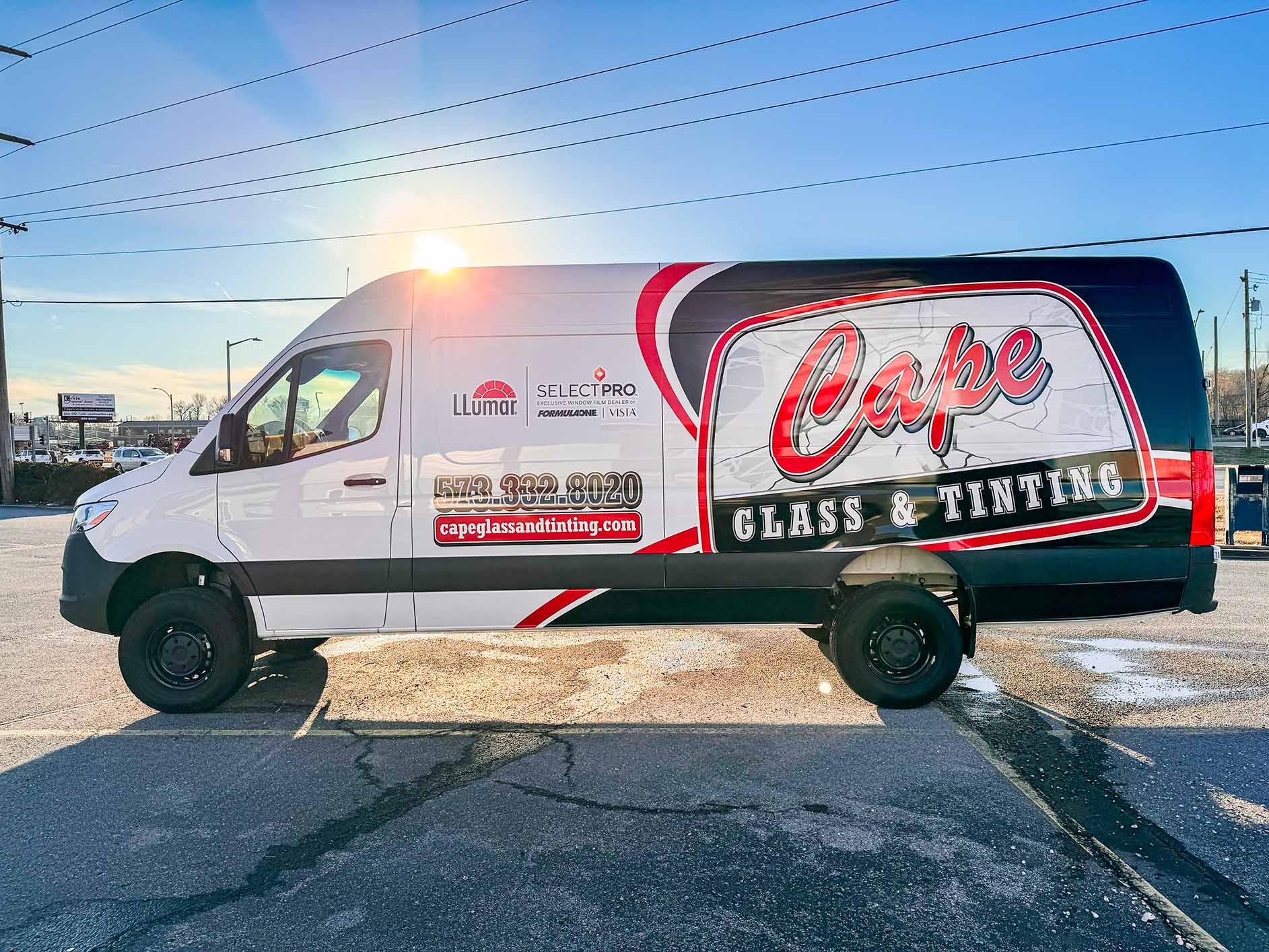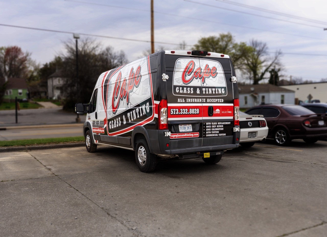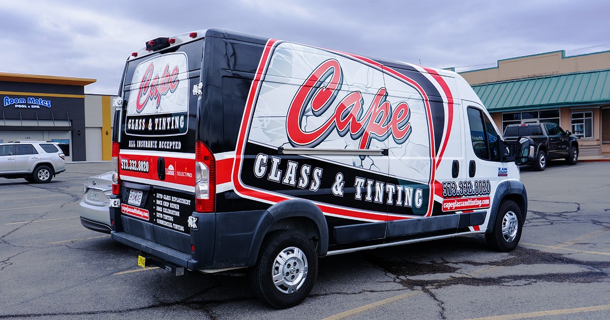 Cape Glass & Tinting had no existing brand. The only reference material I had going into this job was the sign on their building. Using only the font and color of the word "Cape", a logo and brand was created. We explored different options and color schemes before completing the wrap you see on the road today.